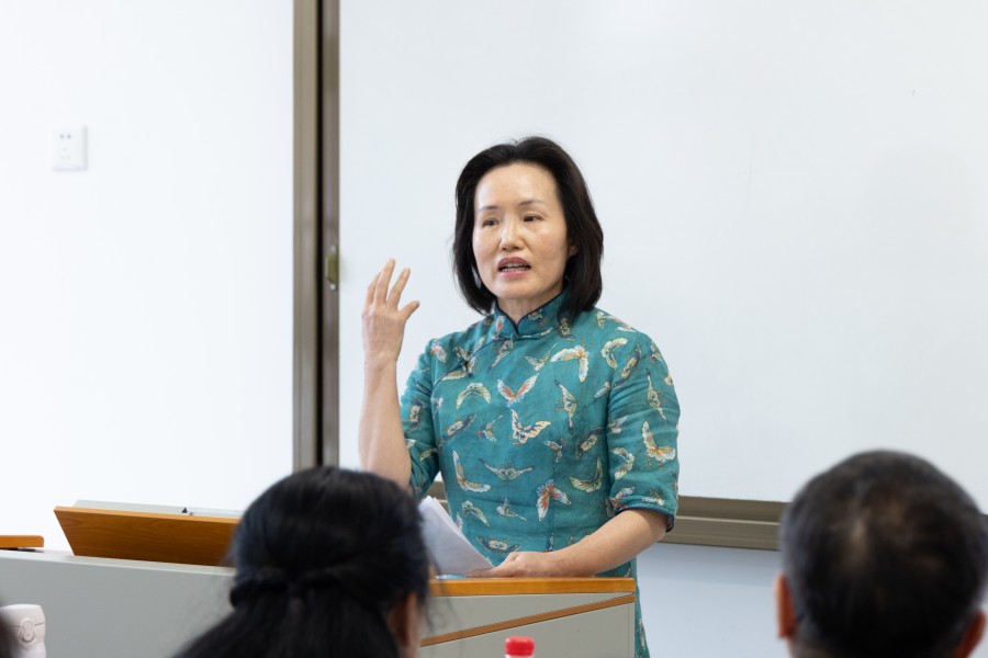 比赛结束后,学校教学督导梁国英教授作了精彩点评,对选手们的表现及比赛的周密组织给予了高度评价。她对选手们的授课内容、言语表达、PPT设计等方面给予充分肯定,同时,对参赛选手提出三点建议:一是要善于从热点话题切入,注重知识点衔接与思想推导的完整性;二是要加强理论阐释,通过典型案例,从小切口深挖理论内涵;三是要合理融入AI技术增强课堂氛围感,保持课件设计的统一性与艺术性。