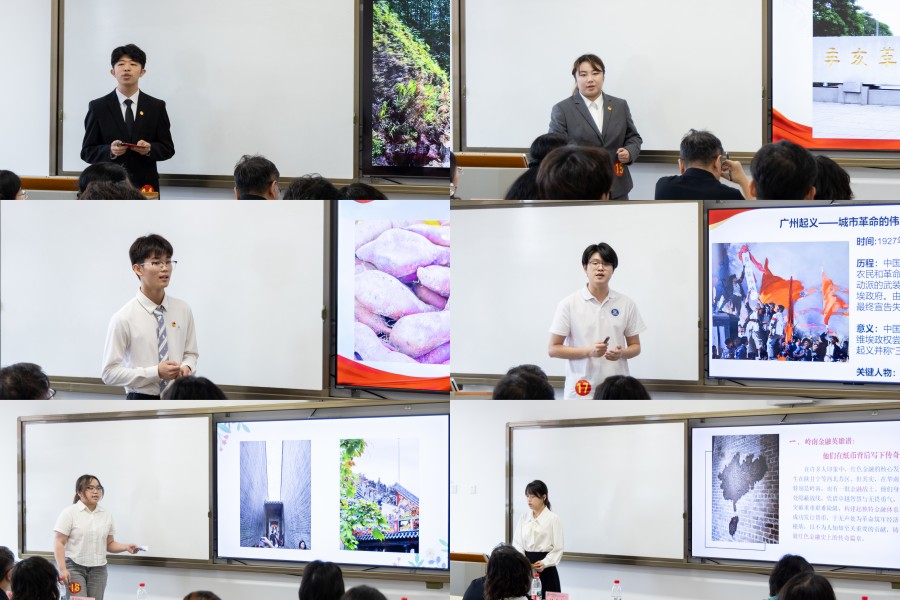 为深入学习贯彻习近平新时代中国特色社会主义思想,引导学生深化对思政课教学内容及大学生关注热点问题的认识和思考,引导学生深刻理解中国共产党为什么能、马克思主义为什么行、中国特色社会主义为什么好,展现思政课社会实践课程实践成果,马克思主义学院组织举办了广州商学院第三届“大学生讲思政课”比赛。5月19日上午,广州商学院第三届大学生讲思政课比赛在九教620举行。本次大赛由马克思主义学院院长杜奋根教授、副院长王立云教授、学校督导梁国英教授、学院督导陈霓副教授、杨斯月副教授担任评委。24支参赛团队、指导教师及部分学生代表参加观摩比赛。比赛由洪诗婷老师主持。
